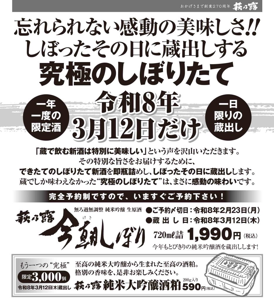 蔵出し日 :令和8年3月12日(木) ※発送の方は翌日以降の着日となります。
