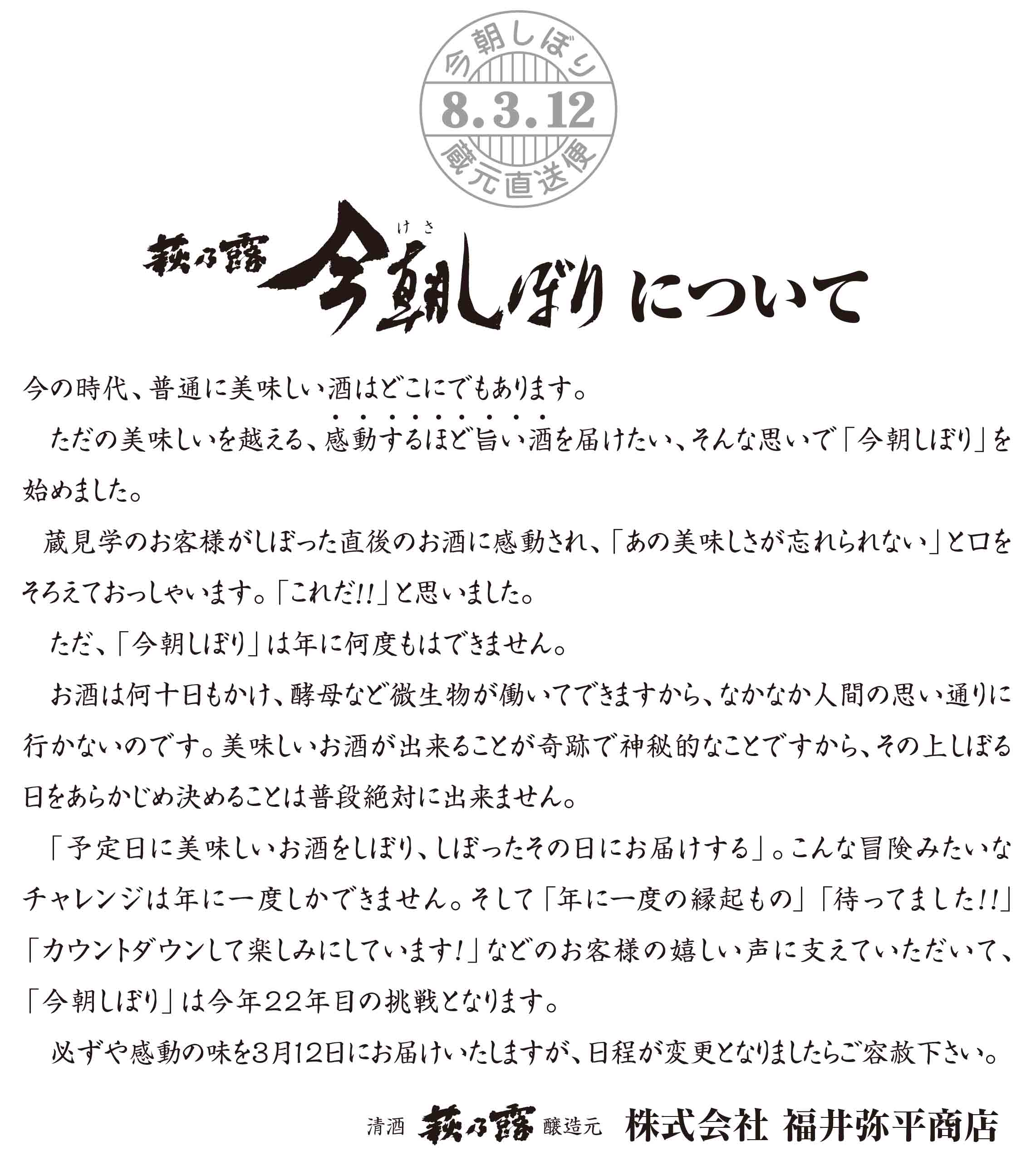 しぼったその日にお届けする“究極のしぼりたて”「今朝しぼり」は、蔵でしか